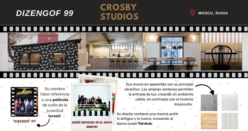 Dizengof 99, un restaurante de Moscú situado cerca de la estación de metro Taganka en un patio del Anillo de los Jardines en Moscú, ofrece un exterior inspirado en el grupo Memphis.