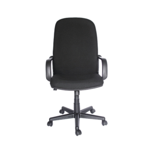 Silla operativa diseñada para oficinas ejecutivas y espacios corporativos de alto nivel.Estructura: estrella de 5 puntas en poliamida, rodajas tipo dual.Elevación: por medio de pistón neumático que permite ajustar la altura del asiento.Mecanismo: plato de acero reforzado con sistema de reclinación y palanca de bloqueo, perilla de regulación de tensión para el sistema de reclinación.Respaldo y asiento: respaldo alto, hule espuma laminado flexible con densidad de 22 kgs/m³ en el respaldo y 24 kgs/m³ en el asiento, de alta resiliencia, brazos de polipropileno rígido.Tapiz: tela en color negro.Resistencia: peso sugerido 120 kgs.