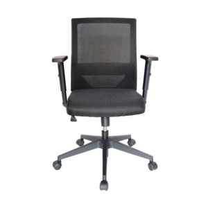 Silla operativa diseñada para oficinas ejecutivas y espacios corporativos de alto nivel.base: estrella de 5 puntas en poliamida, rodajas tipo dual.elevación: por medio de pistón neumático que permite ajustar la altura del asiento.brazos: fijos de polipropilenode de alta densidad color negro.respaldo y asiento: Malla de elastano color negro de diseño ergonómico.resistencia: peso sugerido 120 kgs.