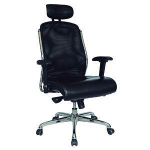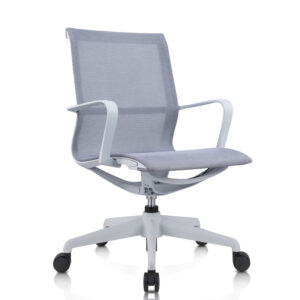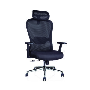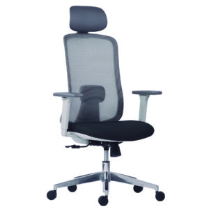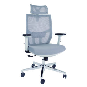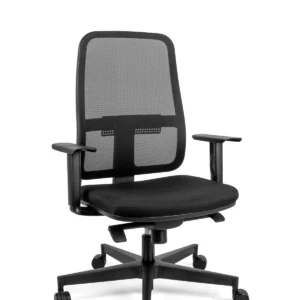 Respaldo: Bastidor interno de polipropileno de alta densidad, soportes en forma de “L” ensamblados al bastidor por un extremo y por el otro se fijan con el asiento en material de fundición de aluminio con terminado en aluminio pulido, tapizado en malla de elastano, sujeta por un liner en todo su perímetro, soporte lumbar ajustable.