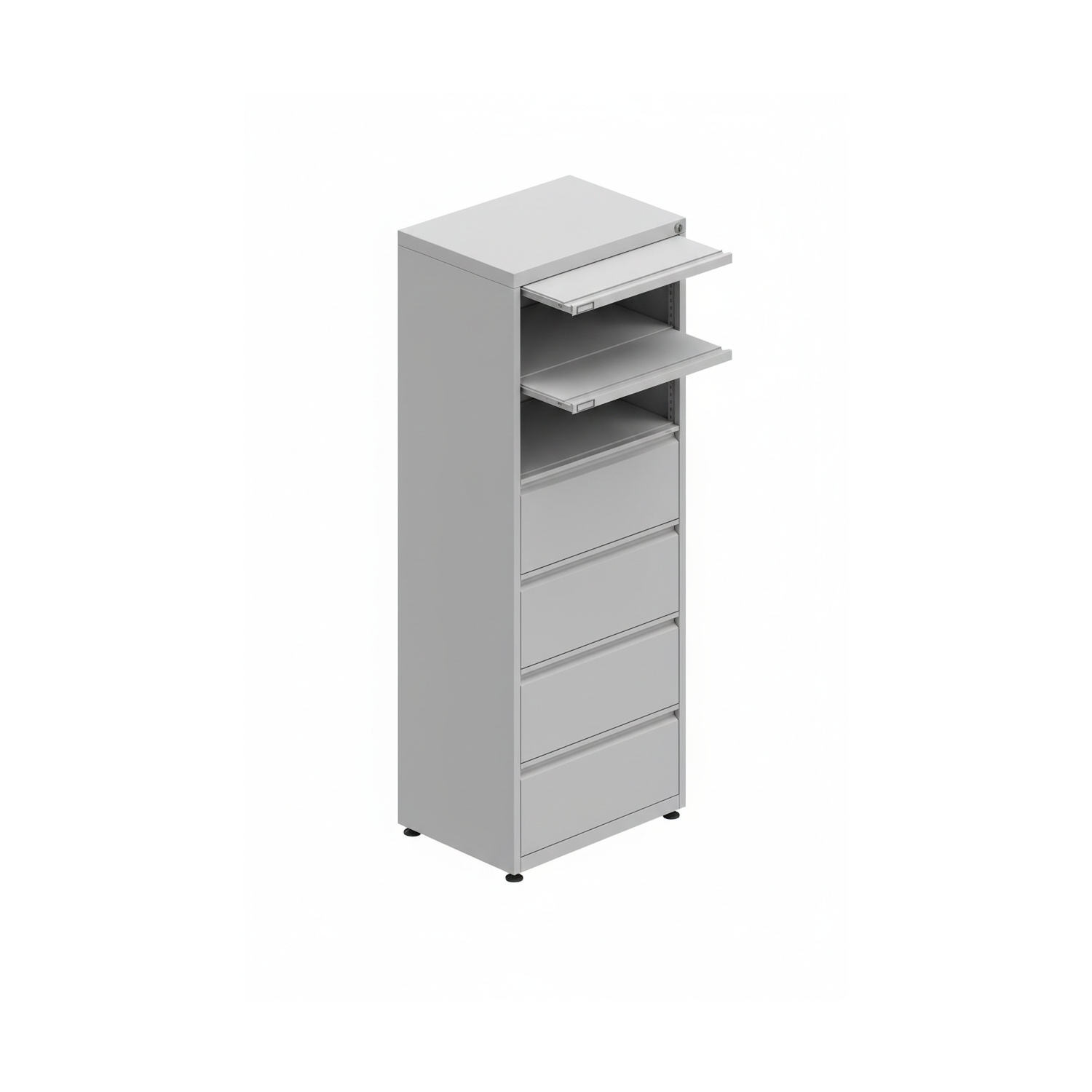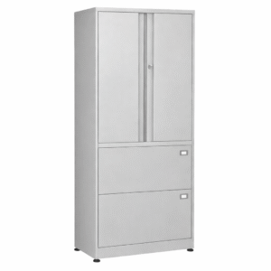 Archivero horizontal mixto, con 2 gavetas horizontales tamaño carta/oficio y 2 puertas abatibles que integran 2 entrepaños móviles. Diseño resistente, seguro y funcional, ideal para oficinas, corporativos o áreas administrativas.