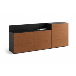Credenza para almacenar materiales de oficina desde papelería hasta objetos personales. Es un elemento indispensable para cualquier oficina, gracias a su diseño puede utilizarse como separador en espacios de trabajo como islas o benching, o bien como complemento en una oficina ejecutiva.