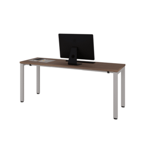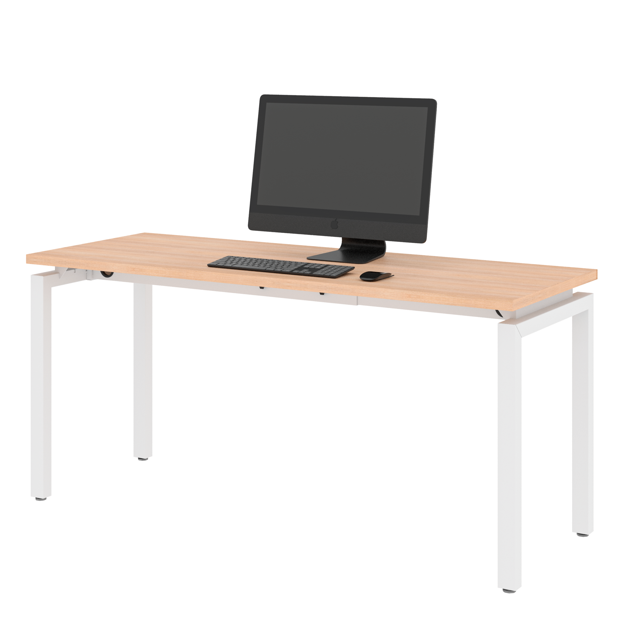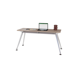 Escritorio operativo fabricado con cubierta de tabla de melamina con base metálica. Diseño resistente, seguro y funcional para oficinas o escuelas.