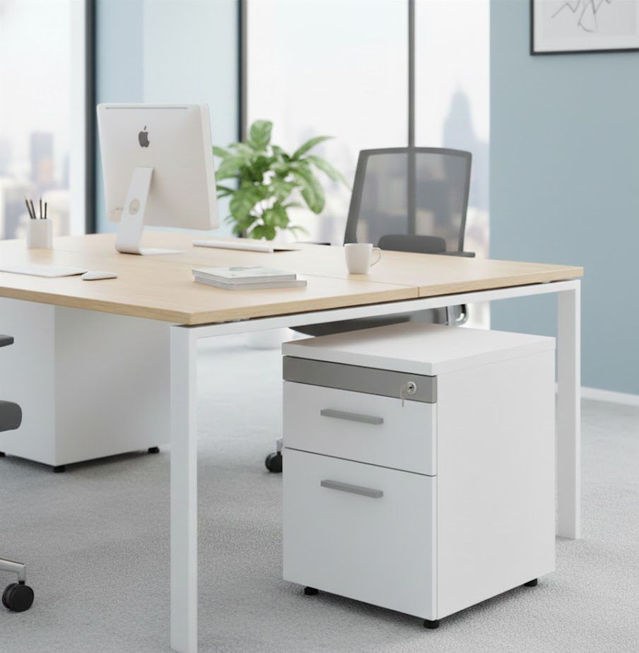 Cajonera metálica combinada de pedestal. Diseño resistente, seguro y funcional para oficinas y áreas administrativas.