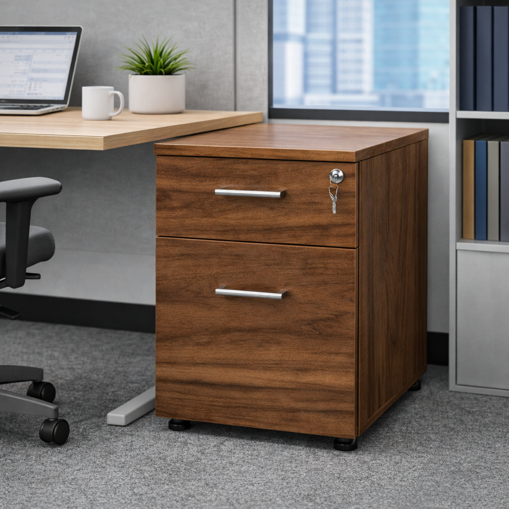 Cajonera básica de melamina. Diseño resistente, seguro y funcional para oficinas y áreas administrativas.