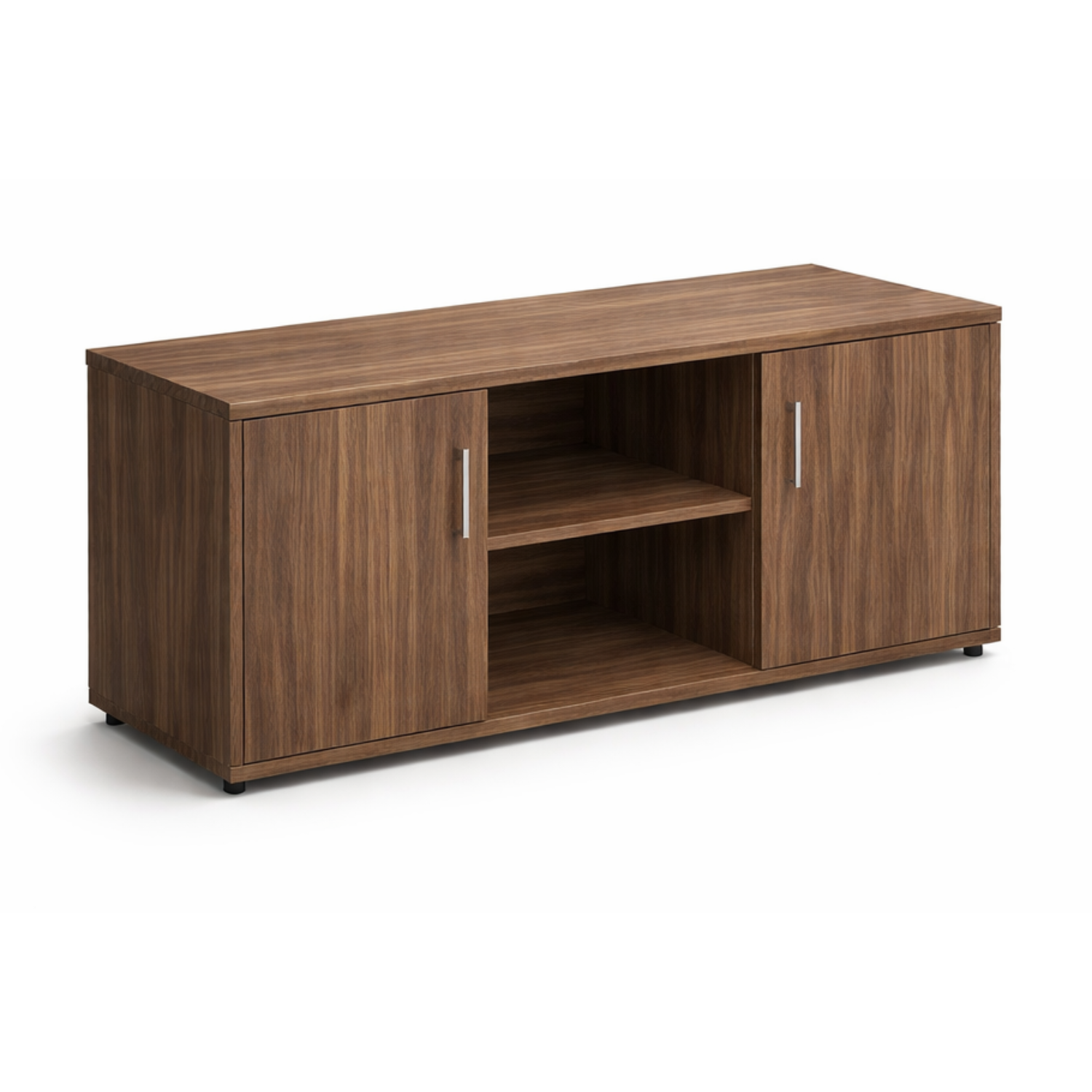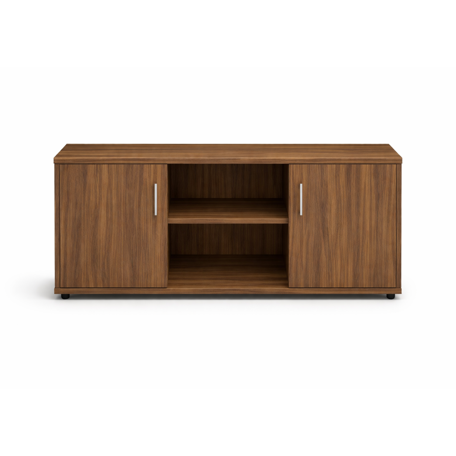 - Credenza con dos puertas batientes con entrepaño interno y hueco central con entrepaño fijo.