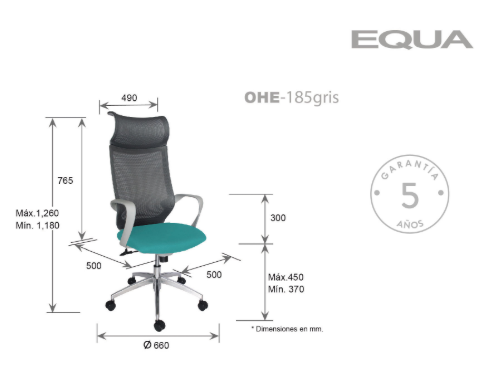 Respaldo: alto en malla de diseño ergonómico con cabecera.