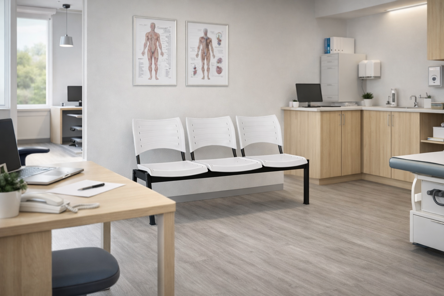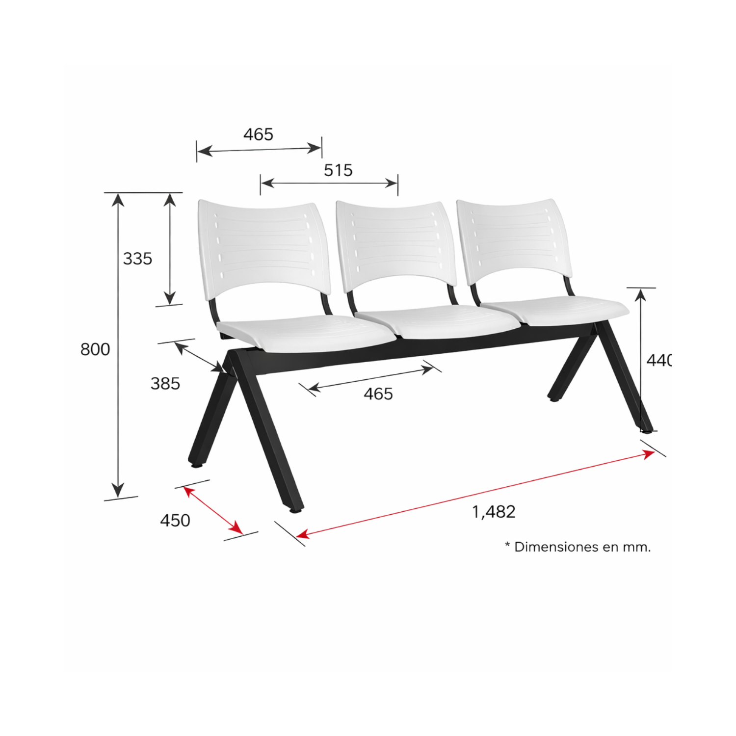 Su diseño modular de tres plazas optimiza el espacio sin sacrificar confort. La base reforzada garantiza estabilidad y durabilidad incluso en uso constante. Además, los materiales metálicos facilitan la limpieza y desinfección, convirtiéndola en una excelente opción para entornos donde la higiene es prioritaria.