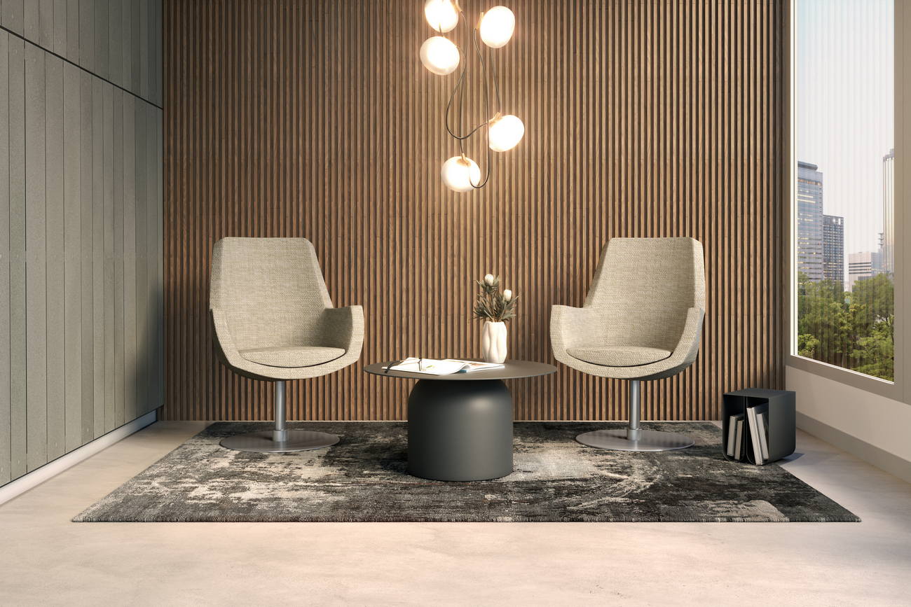 Silla para uso directivo con diseño contemporáneo y tapizado acolchado que brinda confort y elegancia. Incorpora ajuste de altura y base metálica giratoria, ofreciendo estabilidad y funcionalidad en el entorno laboral.