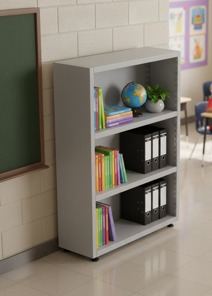 Librero abierto sin puertas tipo armario bajo. Diseño resistente, seguro y funcional para oficinas, escuelas, gimnasios o áreas industriales.