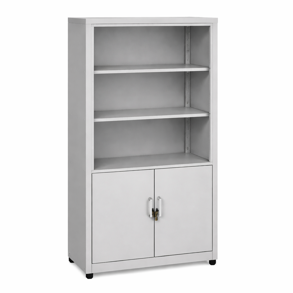 Librero mixto con espacios abiertos y puertas. Diseño resistente, seguro y funcional para oficinas, escuelas, gimnasios o áreas industriales.