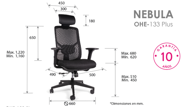 Respaldo: en malla de diseño ergonómico con soporte lumbar ajustable.