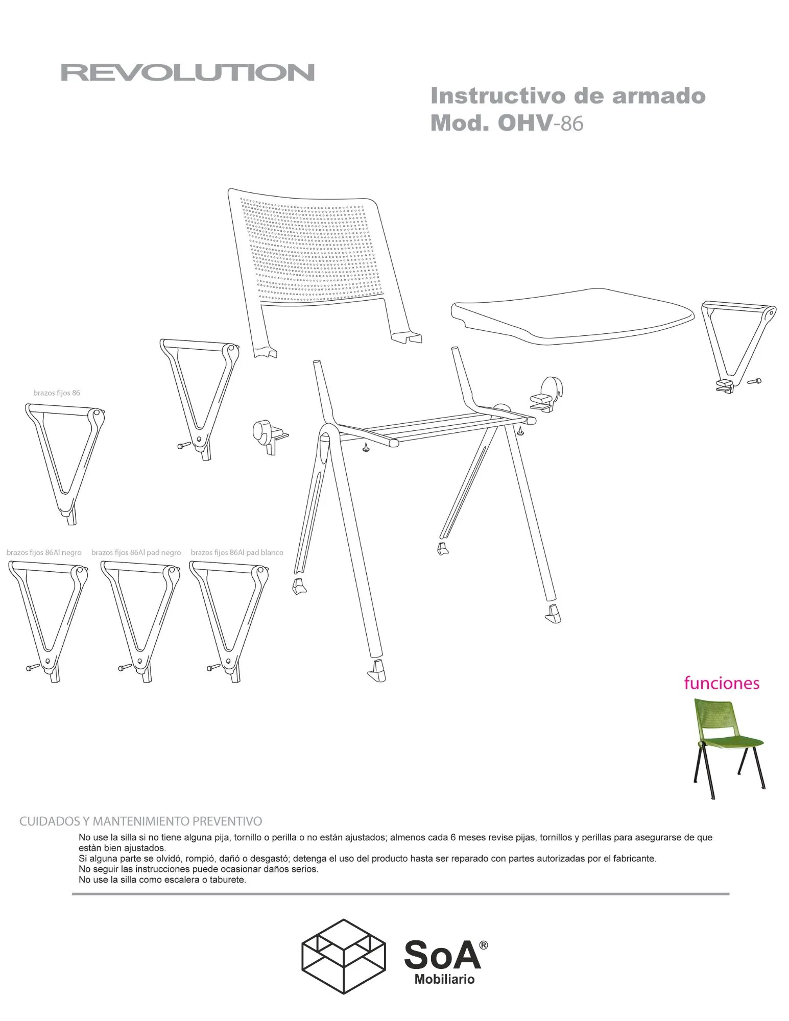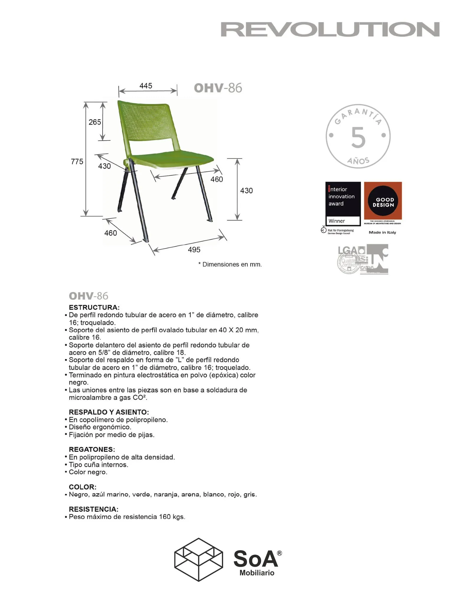 • Respaldo y asiento en dos piezas en polipropileno de alta resistencia y duración.