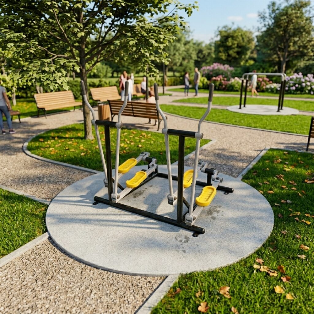 Equipo para gimnasio exterior, ideal para parques y áreas públicas. Su construcción robusta y acabados resistentes lo hacen apto para uso continuo en exteriores, garantizando una experiencia cómoda y confiable para el usuario.