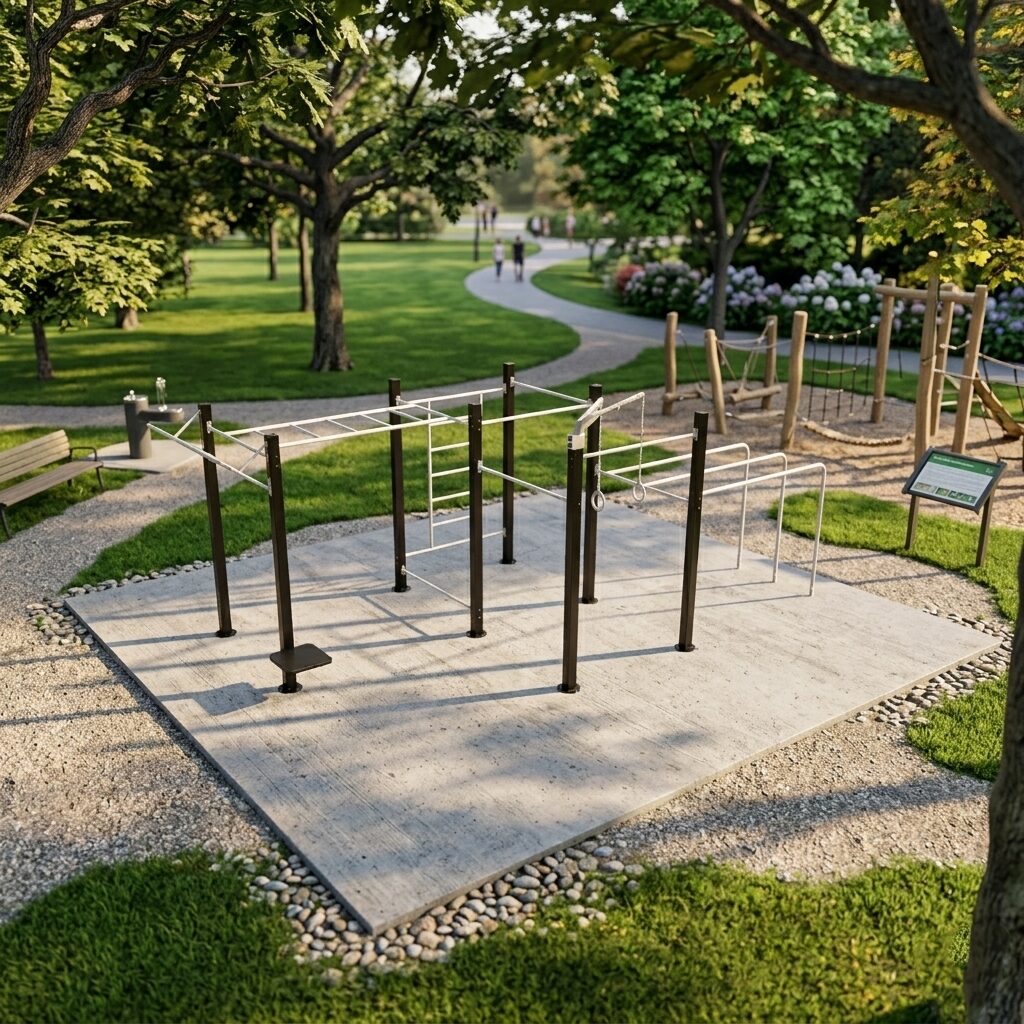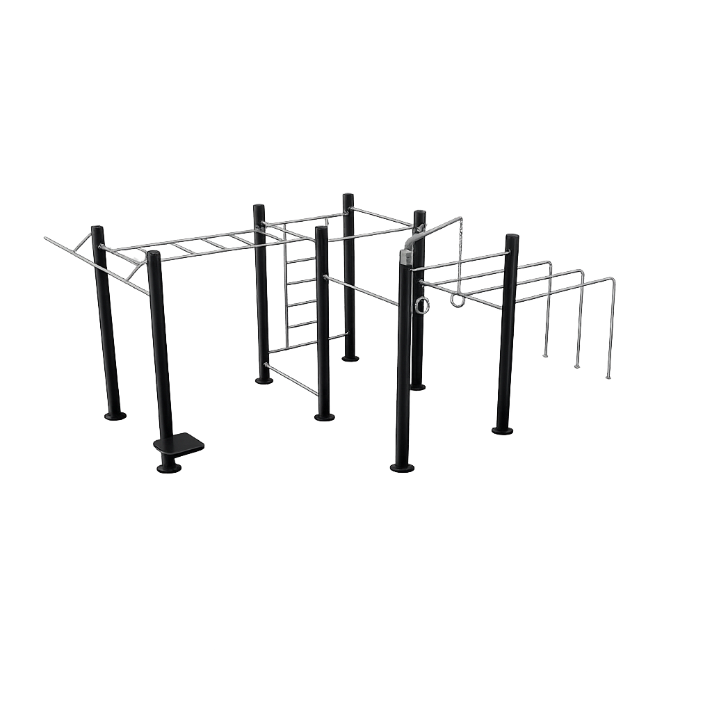 Equipo diseñado para parques y áreas públicas que requieren alta resistencia, seguridad y durabilidad. Su configuración amplia permite el uso simultáneo por varios usuarios, favoreciendo la convivencia y el aprovechamiento del espacio.