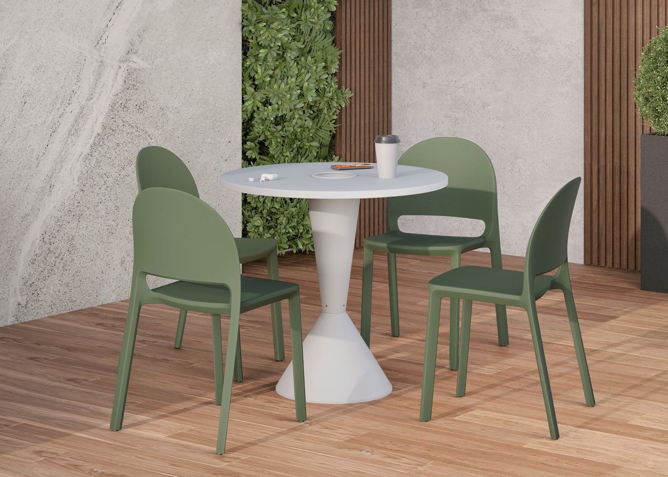 La silla de visita Shine está fabricada en monobloque de polipropileno de una sola pieza, lo que garantiza resistencia y fácil mantenimiento.