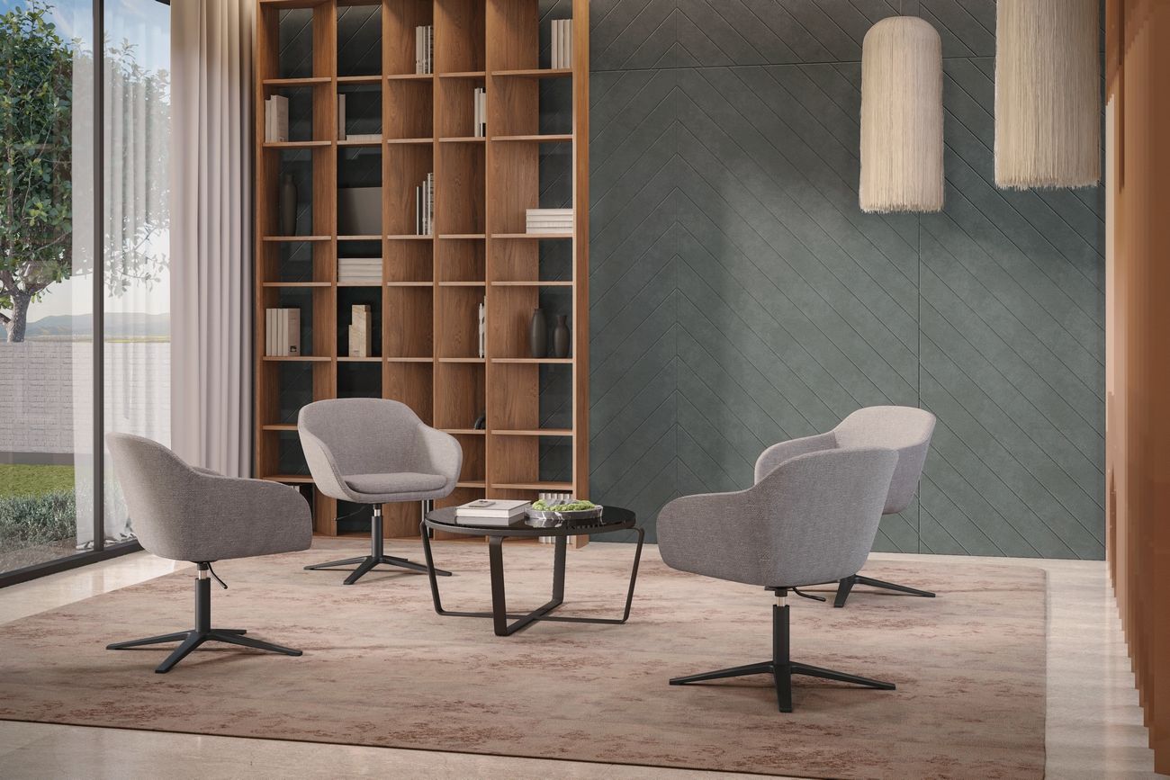 • Tapizada en gris claro o gris oscuro, es ideal para oficinas, salas de espera o espacios residenciales modernos.